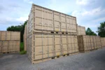 Laterales, techo y puertas batientes de acero corrugado calibre 14 en un extremo y dos laterales batientes.